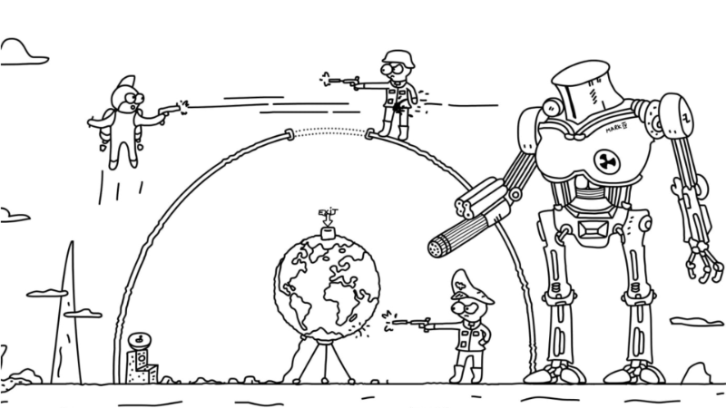 Johnny Rocket blends fast, old-school platforming with crisp, hand-drawn animation. The black-and-white comic world feels alive and destructible.